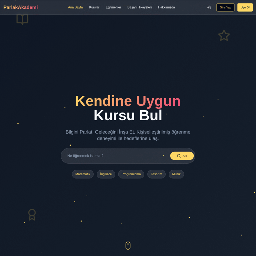 Parlak Akademi, dijital eğitim dünyasında modern ve yenilikçi çözümler sunan bir öğrenme platformudur. Amacımız; öğrencilerin, profesyonellerin ve meraklıların kendi hedeflerine uygun kursları kolayca bulmalarını sağlamak. Matematikten programlamaya, yabancı dilden tasarıma kadar geniş bir kurs yelpazesi ile herkes için uygun bir eğitim alanı sunuyoruz.